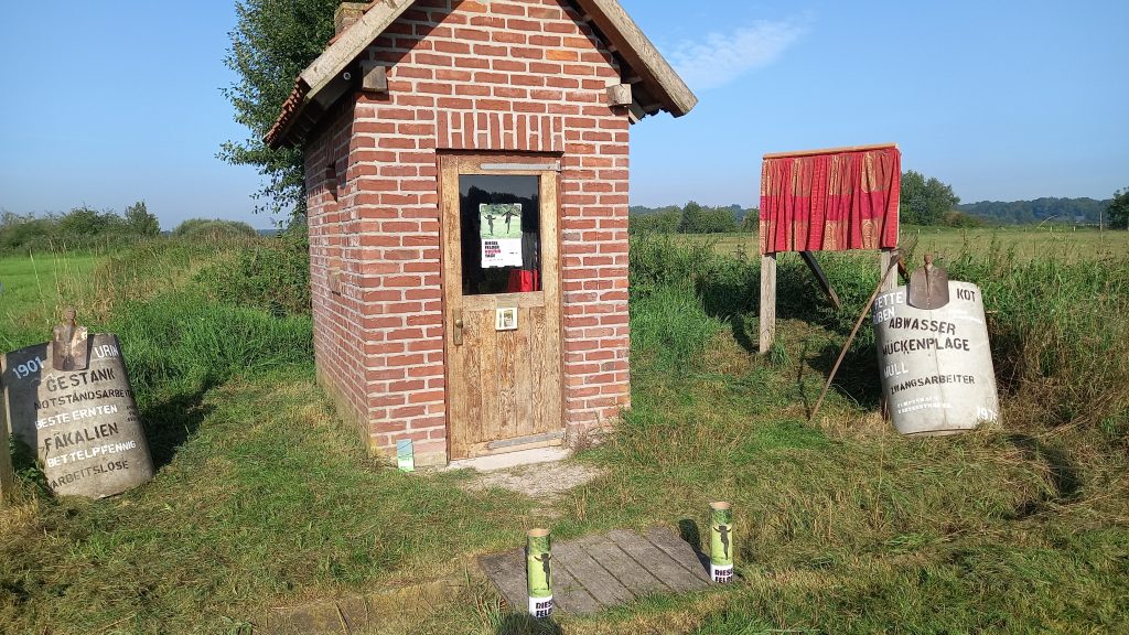 In diesem Jahr wird am Rieselfeldhof zusätzlich zur Installation am Rieselwärterhaus eine Audioinstallation mit Auszügen eines Interviews mit Frau Niesing zu hören sein. Frau Niesing wohnt seit 1950 in den Rieselfeldern und war mit einem Rieselwärter verheiratet.